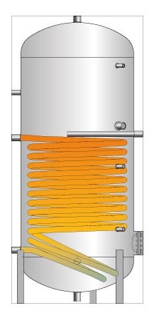 – Rezervorul cu schimbator de caldura permite pe langa utilizarea cu sistemul de incalzire si utilizarea cu un sistem de instalatie solara.