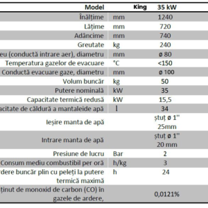 Termosemineu pe peleti Fornello Pellet King 35 kw complet echipata pentru incalzire, pompa , vas de expansiune ,supapa de siguranta, automatizare , tiraj fortat, buncar peleti 80 litri, aprindere automata, Clasa energetica A+